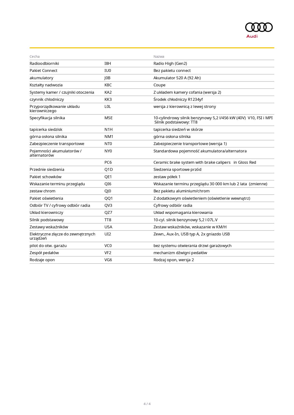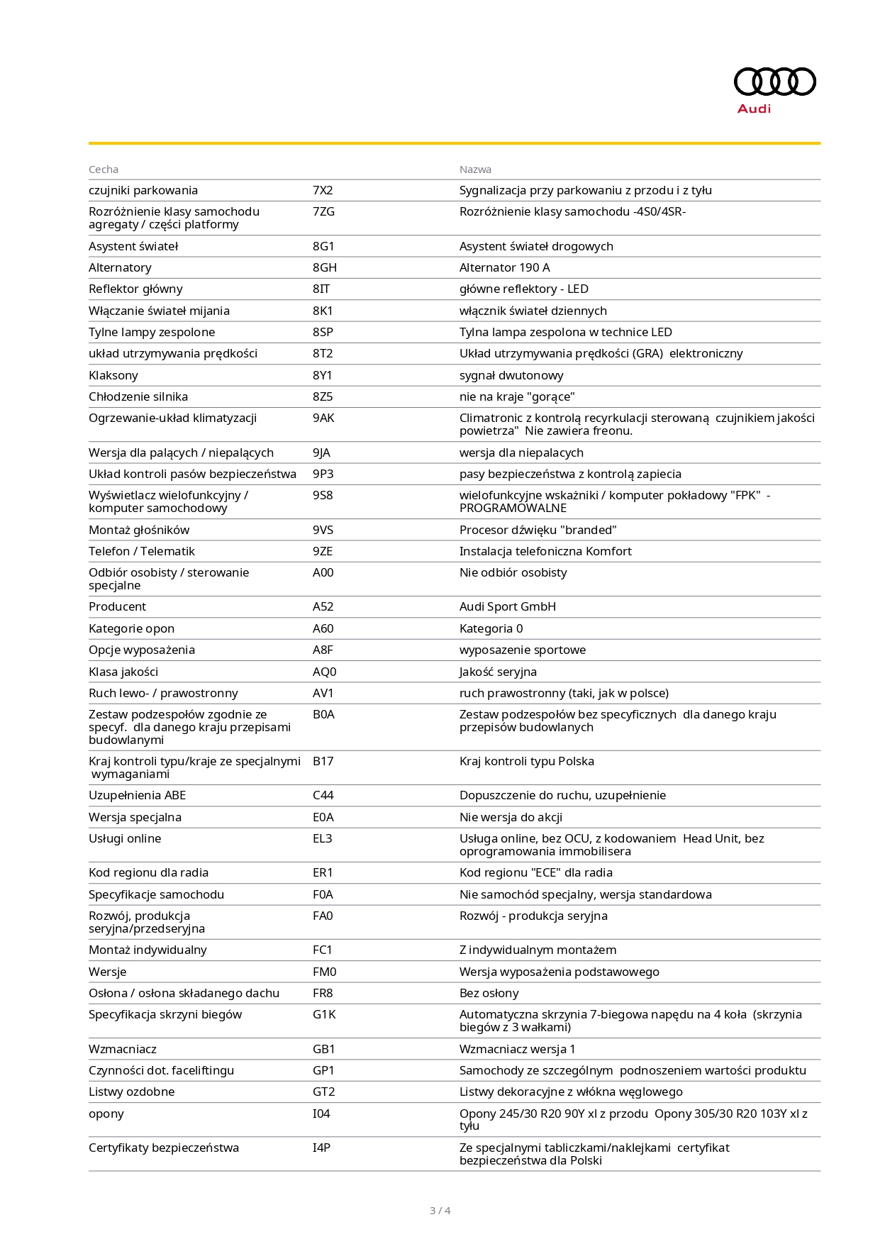 Prześlemy Ci bardzo szczegółowy plik PDF z pełną listą wyposażenia samochodu w języku polskim, który zawiera: